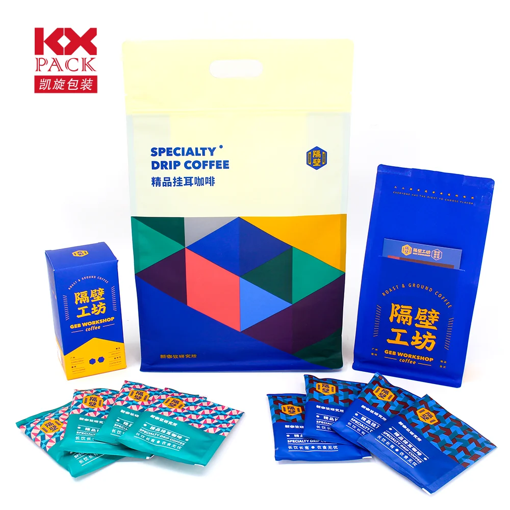 Factory Food Grade Plastic Laminated Aluminum Foil Flat Bottom Coffee Bag One Way Valve For Packing